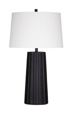 The Sabine Table Lamp epitomizes contemporary sophistication, skillfully crafted with meticulous attention to detail and paired with a classic white tapered shade. The matte black finish enhances the lamp's modern aesthetic, imparting a sense of sleek elegance to its overall design. Thoughtfully chosen materials and design elements make the Sabine Table Lamp a standout addition to any interior space, seamlessly merging modern style with timeless allure. The versatile white tapered shade complements the matte black finish, casting a soft and inviting glow. With its precise craftsmanship and carefully curated details, this lamp stands as a testament to the seamless fusion of modern design and enduring refinement.