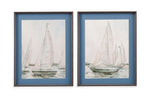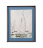 Sail Scribble I features fine art cotton rag paper with a single blue mat and a 3/4" slate veneer molding.