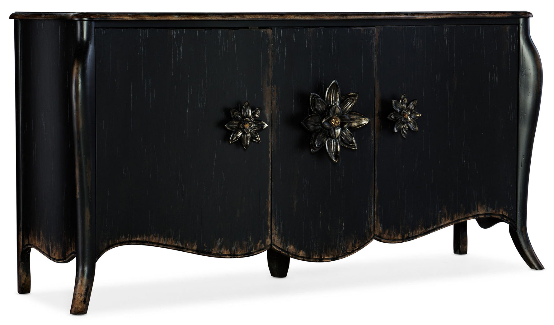 Unit price perChanneling jet setting socialites from the golden age of Hollywood as its muse, Hooker Furniture is set to launches a major expansion to its popular Sanctuary collection. The bedroom, dining room, occasional and home office pieces are grouped into three unique new personas, each of which embody the influences of the iconic starlets whom left impressions of glamour, charm and class on American pop culture. From bold and dramatic to soft and romantic to a statement-making eclectic lifestyle, the three personas – Collette, Anastasie and Diamant – effortlessly bring to life a well-traveled socialite who has curated a collection of home furnishings in her metropolitan home that tell the story of her travels across the globe. Collette, a bold and dramatic look, is characterized by its dark black painted finish which serves as the perfect backdrop for intense pops of champagne, silver and gold, along with eglomise mirror details and dramatic floral carvings.