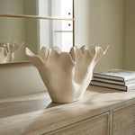 Inspired By The Beauty Of Ocean Corals, This Sculptural Sand-textured Ceramic Bowl Brings An Organic, Artistic Touch To Any Space. Its Fluid, Ruffled Edges And Natural Finish Create A Statement Piece That Complements Modern, Coastal, And Minimalist Settings. Safe For Outdoor Use, But Protection From Freezing Temperatures Is Recommended.