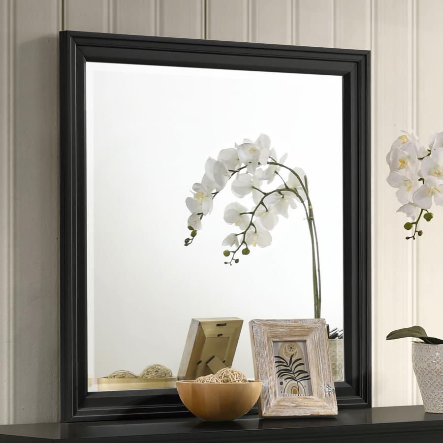 Complete your bedroom set with this elegantly framed dresser mirror, designed to bring both style and functionality to your space. The clean lines of the solid wood frame, finished in a neutral color, provide a timeless appeal that complements a variety of decor styles. This mirror pairs perfectly with the matching dresser, enhancing the room’s sense of light and space. Whether used as a practical grooming tool or as a decorative accent, this mirror is both versatile and stylish. Constructed from durable materials, it promises to be a lasting addition to your bedroom decor.