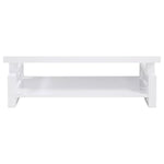 This modern coffee table set, featuring a cocktail table and a side table, blends sleek style with practical functionality. Crafted from engineered wood, both pieces showcase a striking high-gloss finish for a polished and contemporary look. The geometric leg design adds a bold architectural flair, while open lower shelves offer practical storage. Perfect as a coffee table or end table combination, this set elevates any living room with modern sophistication.