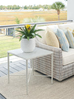 - Artistic White Glass With Swirly Tone-on-tone Patterns Adds A Contemporary Flair To The Square End Table