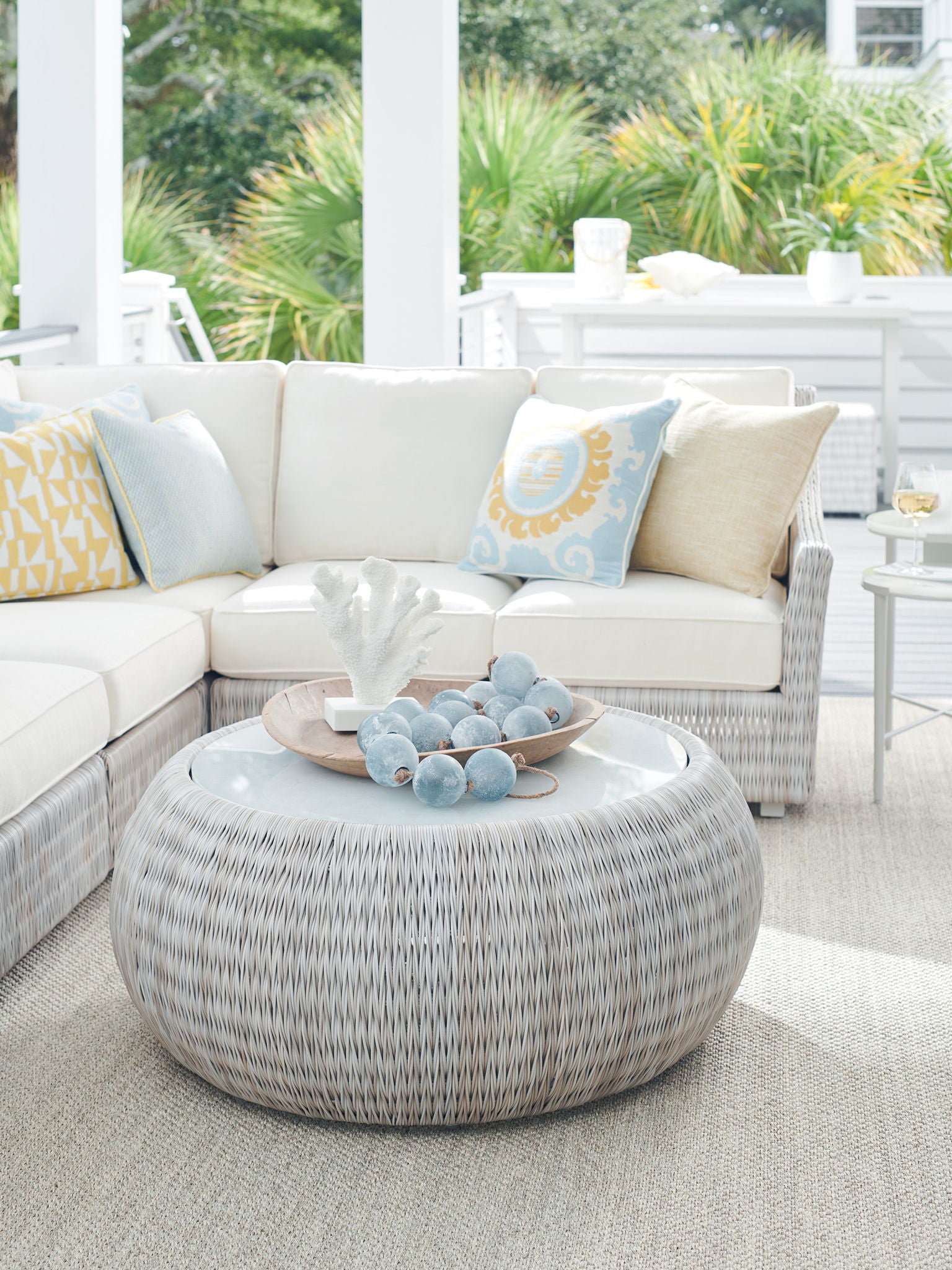 • The Woven Round Glass Top Cocktail Table Offers The Ideal Pairing With The Sectional