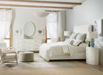 Designed to create a comfortable and inviting retreat within the home, the Serenity collection is defined by its casual finishes and variety of organic textures and materials that combine to deliver a relaxed aesthetic. Inspired by casual, waterfront living, the collection was designed to bring the relaxed aura of the outside in -- no matter where the consumer lives. White oak veneer delivers two key finishes – a whitewashed look and a weathered gray – and is accented with shades of soft coastal blue, sand blasted pine and soft white bronze metal details. Organic materials including abaca rope, natural stone, painted grass cloth, louvered details, and faux coral motifs add to its casual style. The collection’s silhouettes were designed to reflect three distinct personalities – a traditional nature with serpentine shaped case pieces and a softer aesthetic, a modern persona with linear shapes and coral accents, as well as a more casual contemporary character with soft-edged case pieces and organic surfaces.