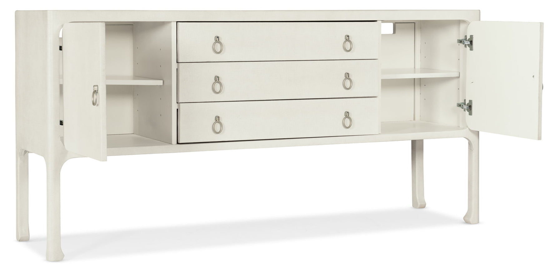 Unit price perDesigned to create a comfortable and inviting retreat within the home, the Serenity collection is defined by its casual finishes and variety of organic textures and materials that combine to deliver a relaxed aesthetic. Inspired by casual, waterfront living, the collection was designed to bring the relaxed aura of the outside in -- no matter where the consumer lives. White oak veneer delivers two key finishes – a whitewashed look and a weathered gray – and is accented with shades of soft coastal blue, sand blasted pine and soft white bronze metal details. Organic materials including abaca rope, natural stone, painted grass cloth, louvered details, and faux coral motifs add to its casual style. The collection’s silhouettes were designed to reflect three distinct personalities – a traditional nature with serpentine shaped case pieces and a softer aesthetic, a modern persona with linear shapes and coral accents, as well as a more casual contemporary character with soft-edged case pieces and organic surfaces.