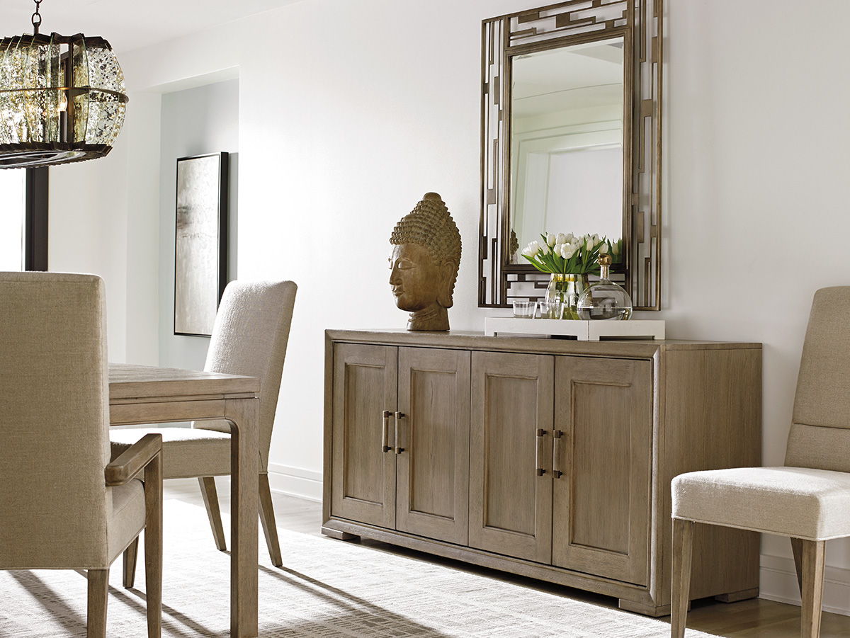 Unit price perThe trend in interior design continues to move in a decidedly contemporary direction, while lifestyle aspirations are becoming increasingly casual. This juxtaposition creates a unique opportunity for a fresh approach to styling that blends elements of both. Shadow Play features clean lines, a relaxed taupe-gray finish, contemporary hand-forged metal designs in burnished silver leaf, and soft textural fabrics on custom upholstered seating. The result is a sophisticated take on casual contemporary style. There is an urban edge to the design aesthetic that makes a strong statement, while the casual finish and relaxed fabrics offer elegant restraint. We invite you to explore teh warm, inviting, approachable look of Shadow Play from Lexington.
