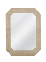 The Shashi Wall Mirror boasts a classic rectangular style with clipped corners, exuding a blend of boho and modern aesthetics. Its brown and natural wood frame, accented with raffia, adds warmth and texture to any space. Crafted with attention to detail, this mirror effortlessly enhances the ambiance of your room.