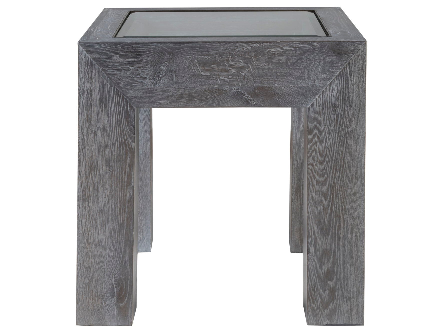 - The Parsons-style End Table Has Concentric Stepped Detail And A Tempered, Beveled Glass Insert Into An Iron Frame.