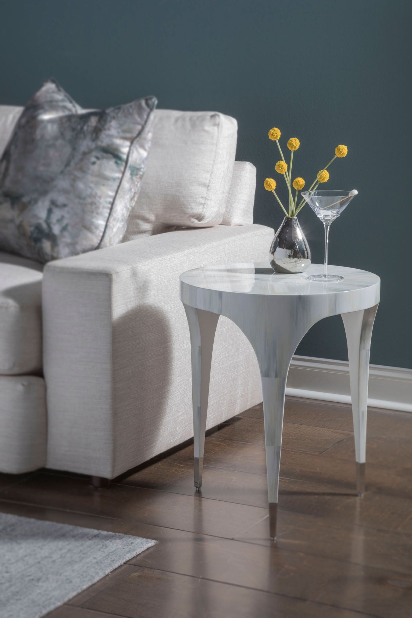 - Contemporary Design Using Faux Horn In A White/gray Bone Coloration And Stainless Finished Ferrules.