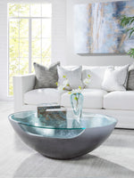 - Modern, Organic Casted Design With A Smooth A Exterior In A Silver Gray With Ombré Effect, Contrasted Against An Interior In Silver Leaf, With Inset Tempered Glass Top And An Oval Bowl-effect Bottom.