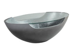 Unit price perModern, organic casted design with a smooth a exterior in a silver gray with ombré effect, contrasted against an interior in silver leaf, with inset tempered glass top and an oval bowl-effect bottom.
