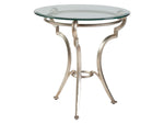 - Hand-forged Iron Base In Champagne Foil Finish, Beveled Glass Top