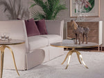 Unit price perHand-forged iron base in foil finish with inset veneered white crystal fossilized stone top