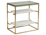 Unit price perThe scale seems to exaggerate the sleek, light beauty of the design with the capiz shell sheves glistening beneath the lay on glass top, and complimenting the foil finished iron base.