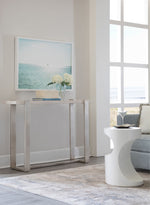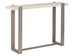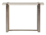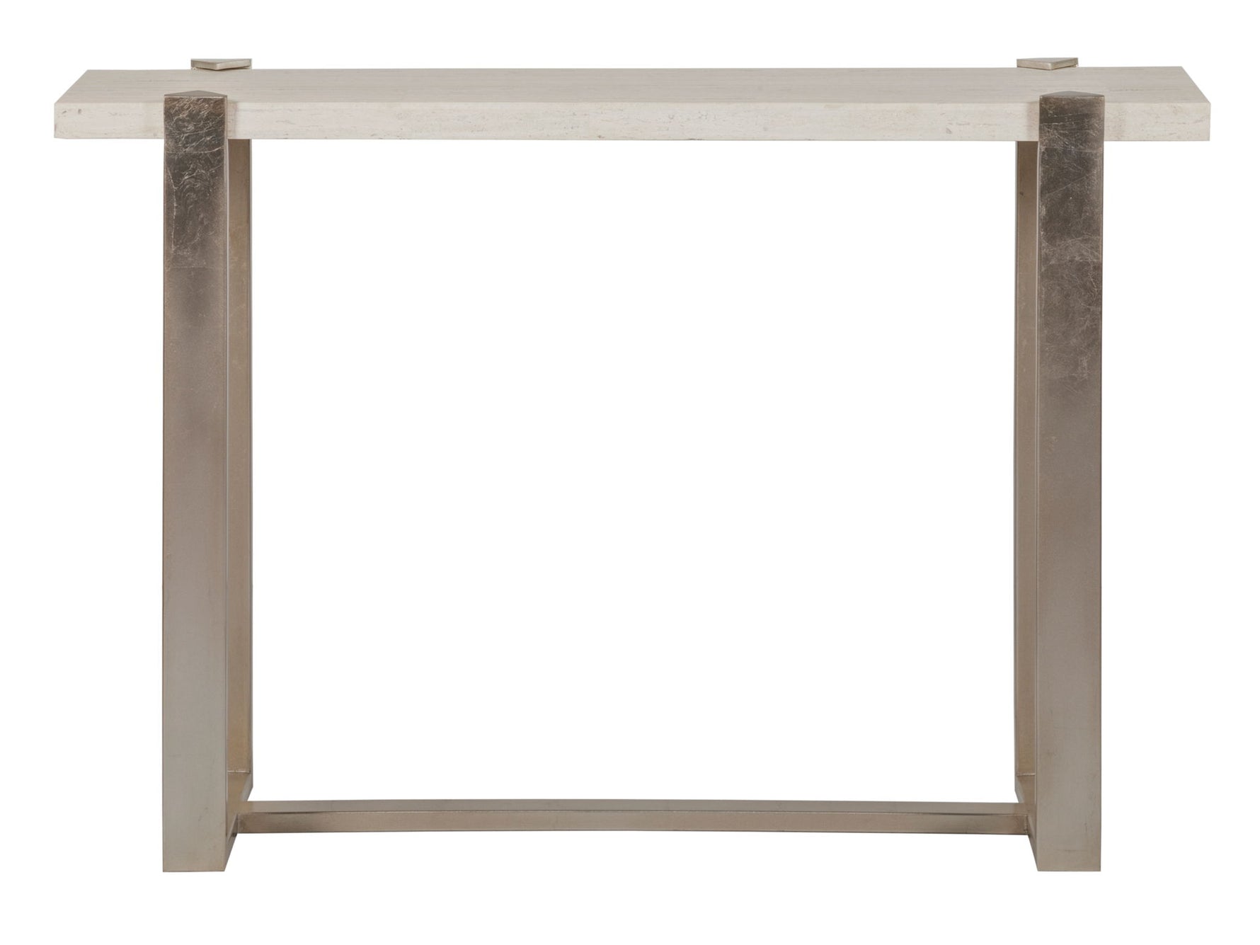 - Versatile Contemporary Console Table Featuring A Honed White Vein Travertine Top Standing On An Iron Base In A Champagne Silver Leaf Finish