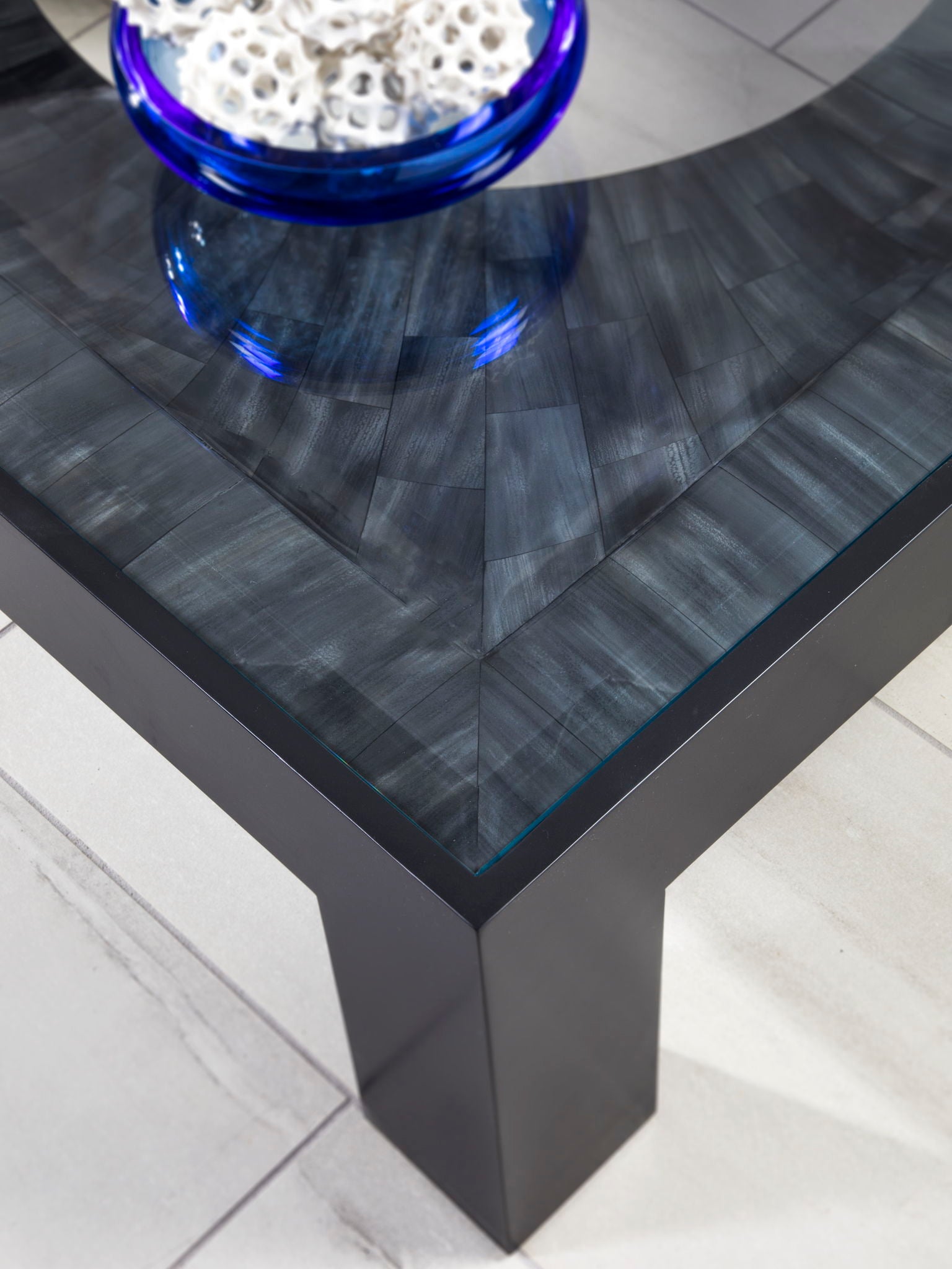 Unit price perFaux horn motif hand-painted by artists on individual resin tiles in a bone coloration with an inset Ultra clear beveled and tempered glass top.