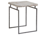 - Textured, Hand-forged Iron Base In An Antiqued Iron Finish With Fossilized White Clam Shell Veneer Top