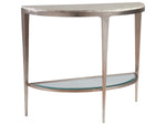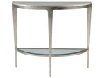 Unit price perCapiz shell inlay top on hand-forged iron base in a champagne foil finish with a tempered glass shelf below.