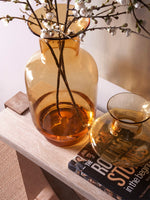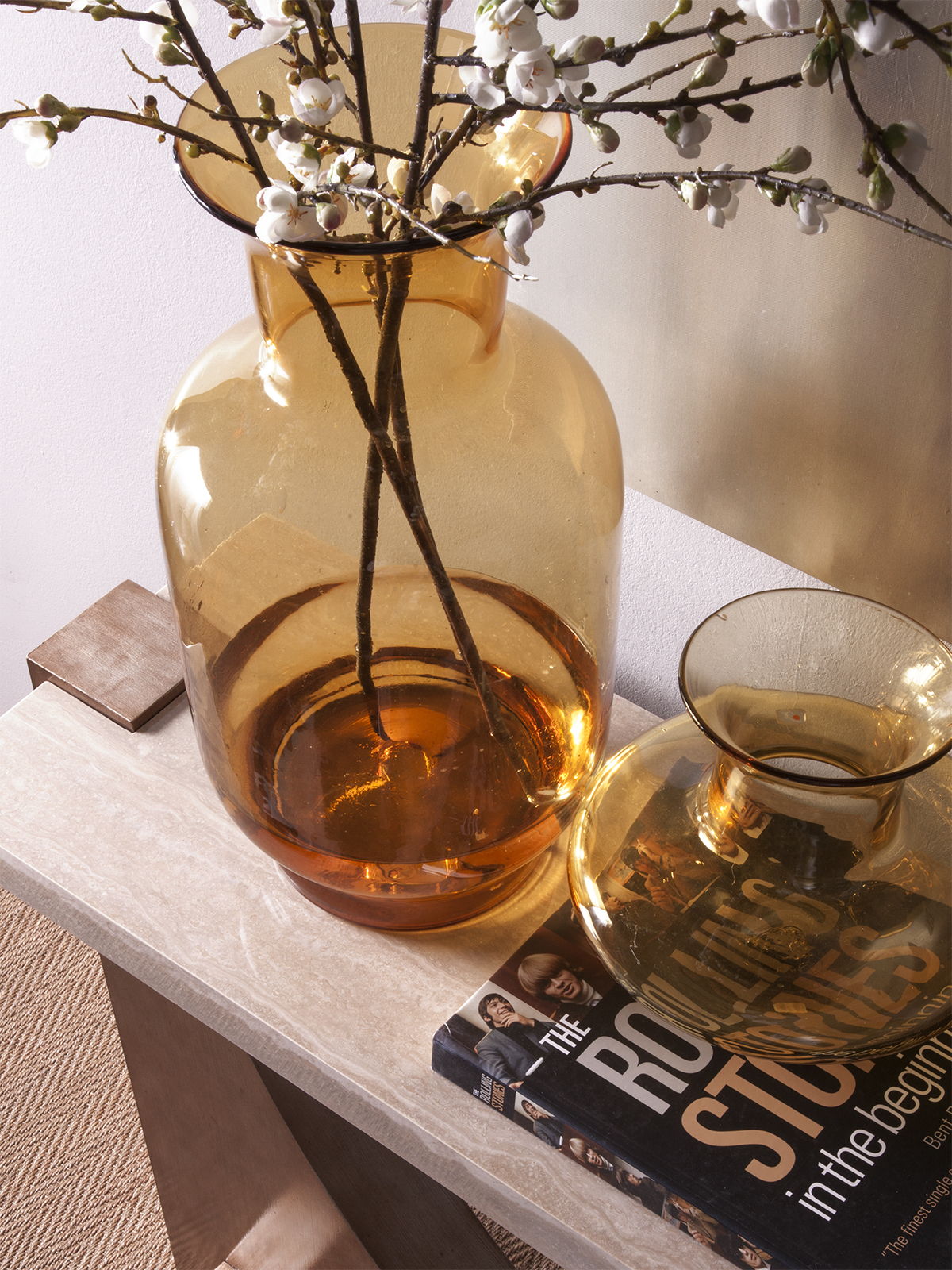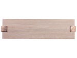 Impresario stuns in its simplicity, with a graceful descending arch supporting the substantial and beautiful Italian silver travertine stone top on a mahogany base in a warm silver leaf finish.