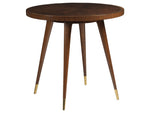 - A Sleek,delicate Round End Table With Contemporary Sensibilites And Hints Of The Art Deco Era, In Quartered And Crotch Black Walnut With Subtle Brass Inlays