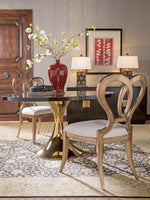 - Solid Mahogany In Warm Silver Leaf Finish, Upholstered Seat