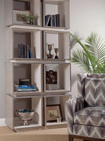 With quartered white oak veneers contrasted against heavily bleached olive ash burl trim, our Mercury Etageres are a modern take on the traditional bookcase or room divider