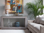 • Veneered Raffia Base With Mitered Corners In A Light Gray Coloration And A Tempered Glass Top With Flat Polished Edge.