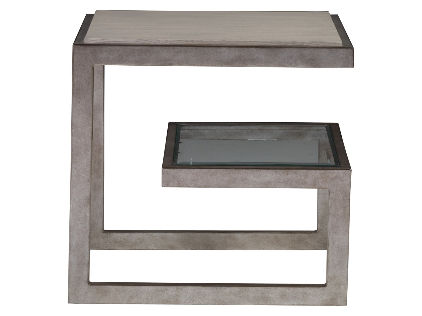 - Contemporary Design Crafted From Antiqued Silver Leaf Finished Metal Base, Inset Tempered Glass Shelf, And Inset Quartered White Oak Top In A Wire Brushed Light Gray Finish.