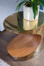 Unit price perModern sculptural design with a cast base electroformed in antique bronze, inset with natural barnyard oak veneers.