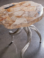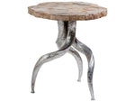 - Cast Antler Base In Silver Leaf Finish, Veneered Petrified Wood Top With Live Edge