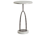 Unit price perContemporary designed hammered wrought iron pedestal base in a pitted antiqued iron finish, with Century marble top and pedestal base.