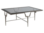 • Silver Leaf Finished Iron Base, Decorative Stretcher, Inset Glass Top With 1 Inch Beveled Edge.