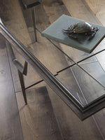 • An Original Design In Solid And Tubular Iron, With Legs In Tapered Four-sided Construction That Extends To An Apron Beneath The Top Rim, Creating Seven Layered Steps From The Inset Glass Top
