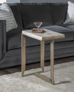- Hand-forged Iron Base And Inset Veneered Fossilized Wood Stone Top.
