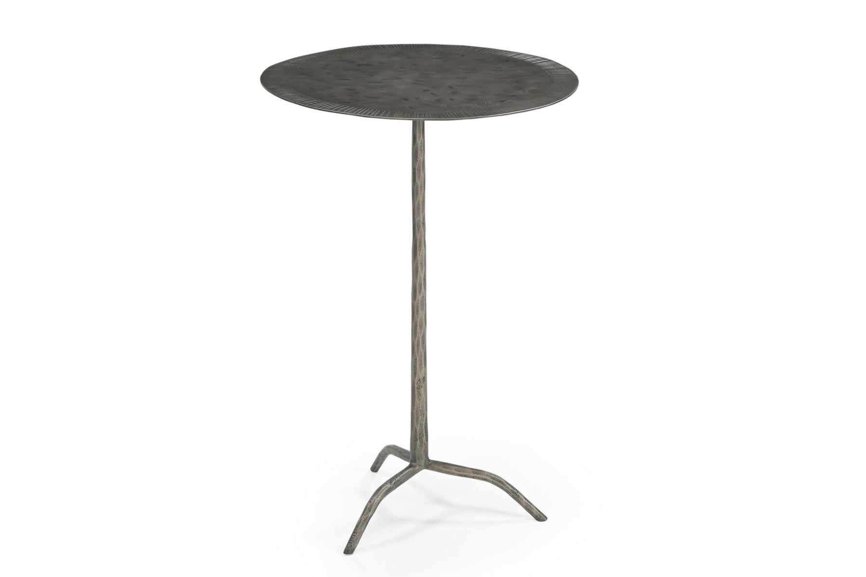 The Silas accent table is the perfect modern addition to any space, offering both functionality and style. Crafted from hammered iron with an antique nickel finish, its unique three-legged design adds character to your decor. The hammered metal construction not only ensures durability but also brings a touch of artisanal charm to your home.