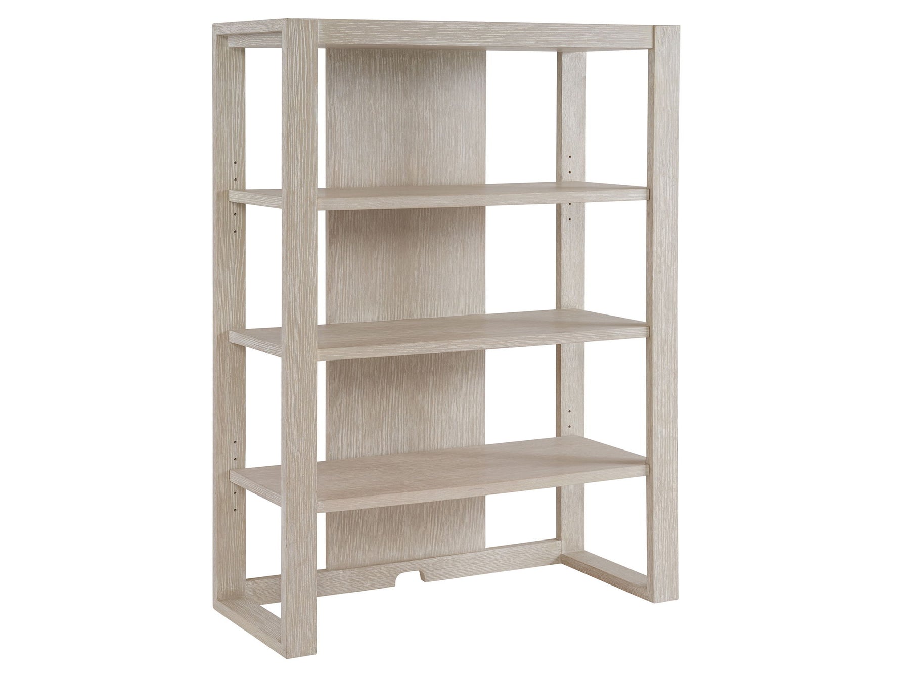The Silverstone collection features designs with strong contemporary lines, crafted from white oak in a light taupe finish. Surfaces are gently sandblasted to enhance the natural grain patterns and then highlighted with an ivory ceruse. Custom hardware is finished in a soft champagne coloration. The stiking architectural styling and light finish offer a fresh take on contemporary office and media designs.