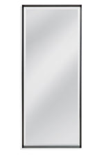 The Sloan Leaner Mirror showcases a sleek and modern design with its deep-profile wood frame finished in a sophisticated matte black. Its rectangular shape and beveled glass add contemporary elegance to any room. Elevate your space with the Sloan Floor Mirror, a stylish and versatile addition that effortlessly enhances your home decor.