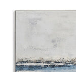 Soft Waves embodies serenity in an acrylic-painted canvas adorned with silver metallic paint accents, elegantly framed in white.