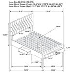 This stylishly practical wood storage bed from the Soledad Collection features a clean, convenient design. It features Asian hardwood, poplar, and MDF construction and is mattress-ready (no box spring required). Bed includes four spacious drawers on rollers. An elegant button tufted headboard imparts classic sophistication. Luxuriant fabric upholstery conveys a soft allure.