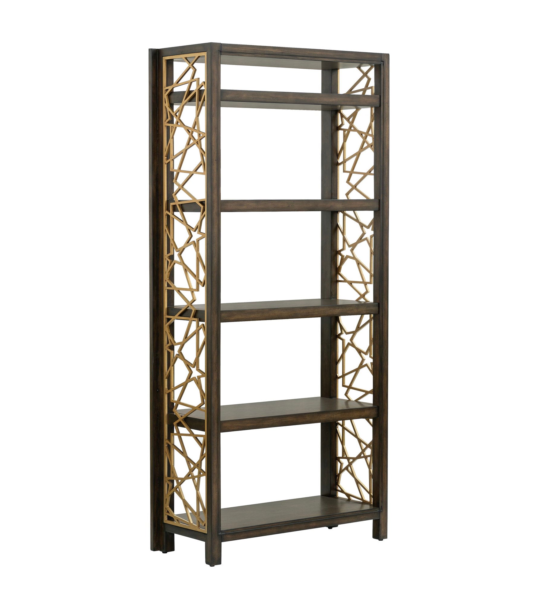 Something In The Stars is a striking modern-inspired etagere that blends unique design with craftsmanship. Crafted from solid wood and veneers in a warm, smoked birch finish, it offers a sophisticated, earthy tone. The real standout is the intricately patterned end panels in a brushed gold painted finish, adding both a dramatic design element and a bold contrast to the piece.