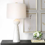 • The Sonata Table Lamp Features A Heavily Textured Ceramic Base With A Stone Ivory Finish, Paired With A Matching Large Finial And Brass Plated Accents.