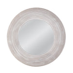 Spin Wall Mirror is a round decorative wall mirror. The wood mirror frame features a white wash finish. Includes two "D" ring attachment points for ease of access for hanging.