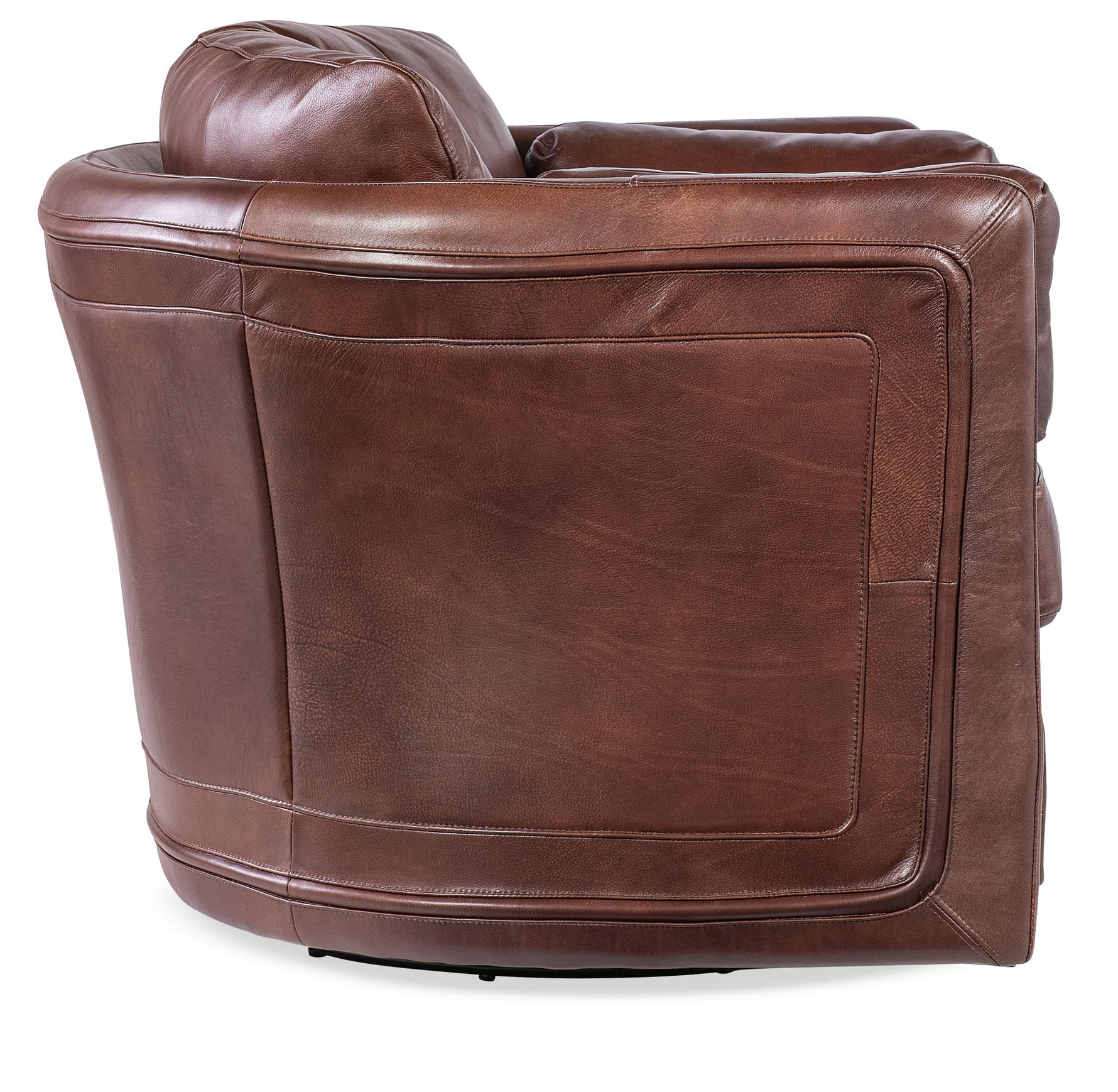Impeccably tailored and beautifully scaled, the timeless Woodstock Chair has an inviting flared arm design and a plush pillow at each arm, along with an accent panel on the front rail, sides and back. The chair is upholstered in the Truffle semi-aniline top grain leather.