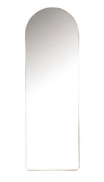This full-length floor mirror features a striking arched silhouette with a minimalist metal frame. Designed for vertical mounting or floor placement, its slim profile delivers a clean, contemporary look. The expansive glass surface provides a complete head-to-toe reflection, ideal for dressing areas, bedrooms, or hallway displays. The curved top softens its modern edge, making it a versatile addition to a variety of interior spaces.