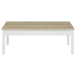 An updated version of farmhouse style is soft and easy on the eyes as this three-piece wood coffee table set is a viable option for your family room or living room. Casual and yet nicely designed, this set offers a versatile finish palette of distressed pine and white over wood products. Clean lines add an easy optical effect. Make your space a simple yet stylish venue with tables designed to last through redesigns. Set includes one rectangular coffee table and two end tables.