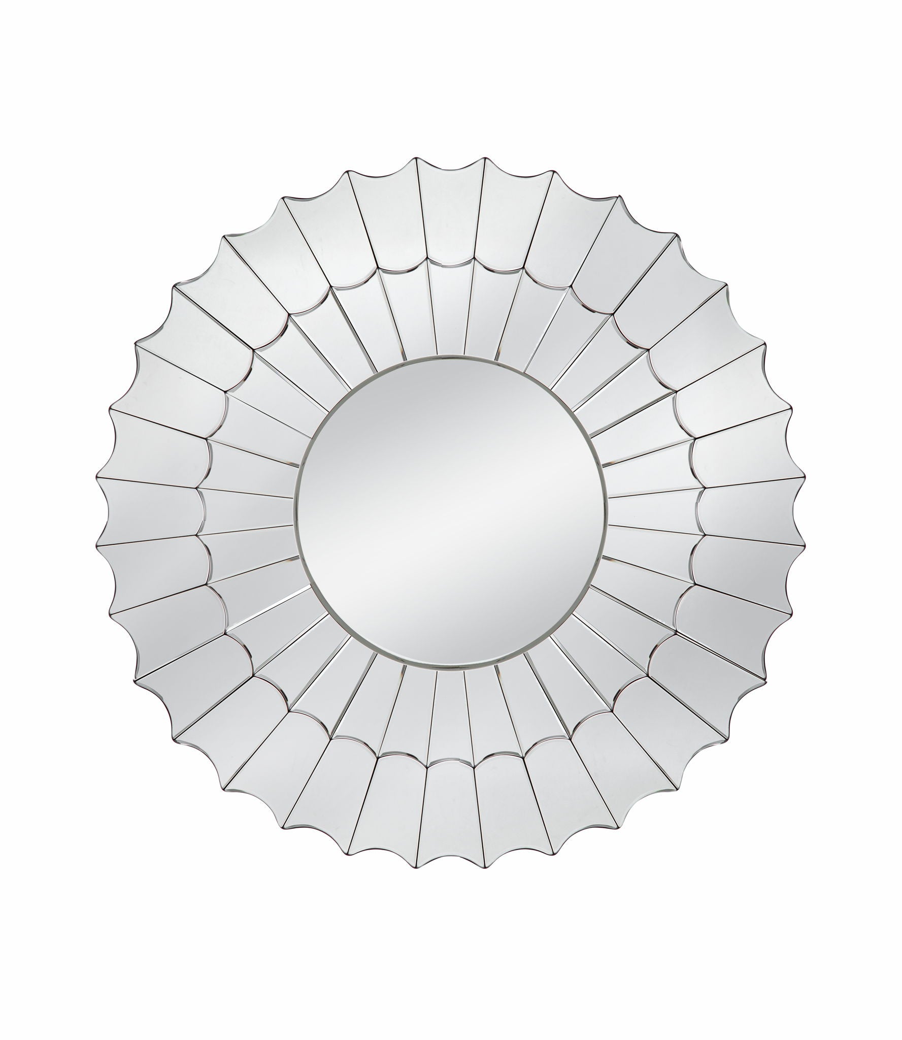 The Stringer Wall Mirror showcases a glamorous traditional aesthetic with its radiant round design and sleek silver finish. Crafted to enhance any space, its elegant simplicity adds timeless charm to your decor. An exquisite choice for those seeking a touch of sophistication in their home.