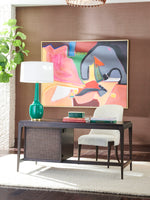 Sligh Studio Designs is a unique assortment of consoles and desks comprised of an exceptional array of design and custom finishes. The concept behind the TV consoles was to create a collection through which we could design distinctive pieces that highlight furniture as the room's statement piece rather than the electronic equipment. The new home office is a stylish extension of one's interior decor and a room that directly reflects the personality of its occupant. The desks blend the form and fucntion for which Sligh is known, with an inspiring dose of designer style and color. Decorative metal bases feature polished stainless steel and antique brass. Tops showcase red lacquer, rosewood, a custom parchment finish and sea mist faux Shagreen leather.