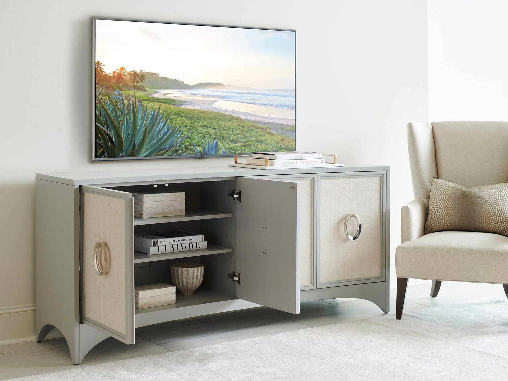 Studio Designs - Newbury Park Raffia Media Console - Gray