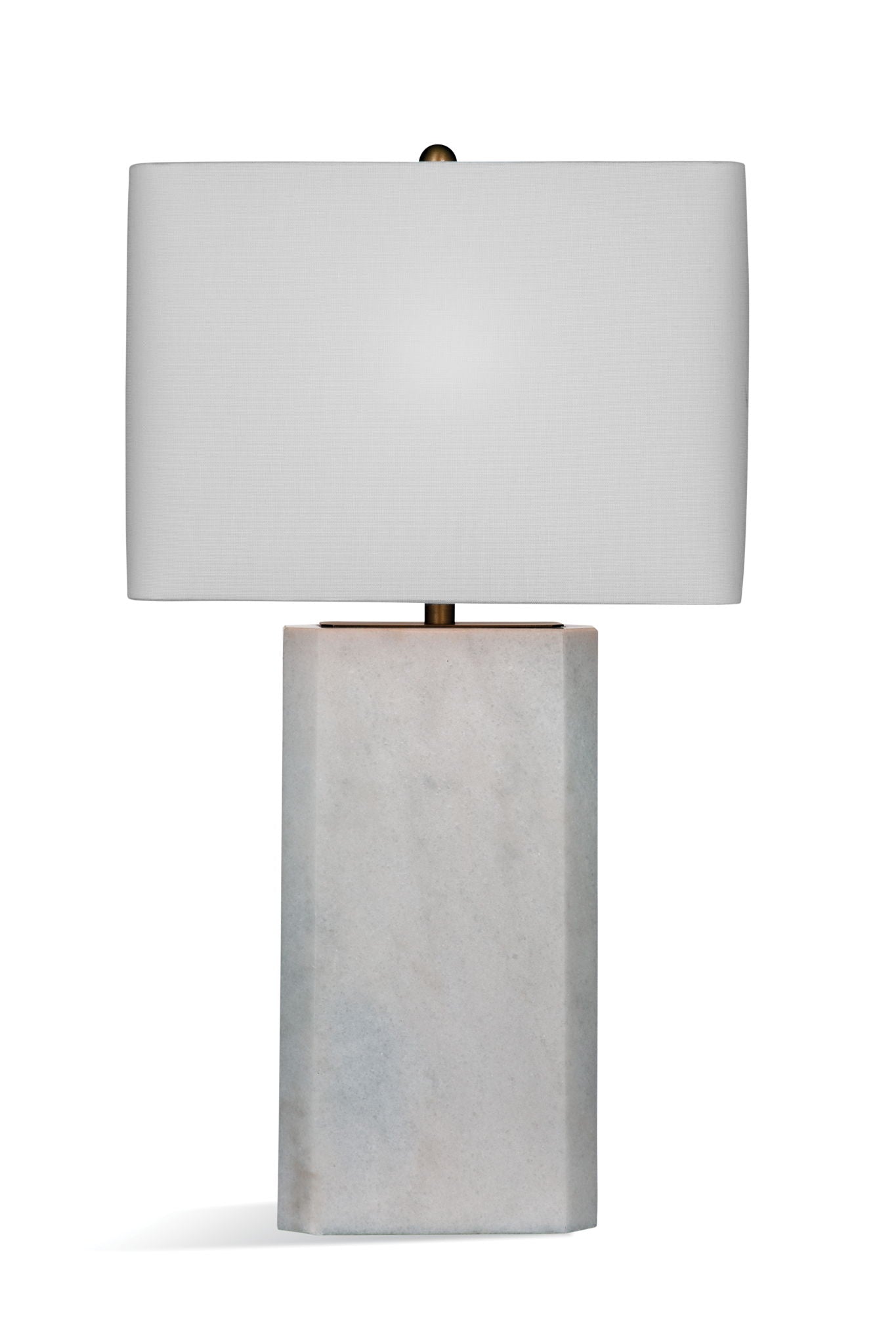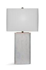 The Sundree Table Lamp is crafted ofmarble with a white rectangular shade.